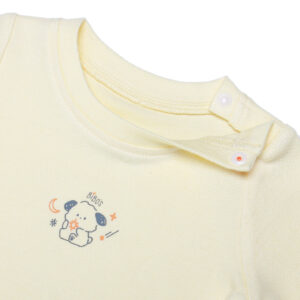– Kiểu dáng basic màu vàng nổi bật, kết hợp với chi tiết chú cún nhỏ xinh giữa ngực mang đến vẻ ngoài năng động và đáng yêu cho bé trai.