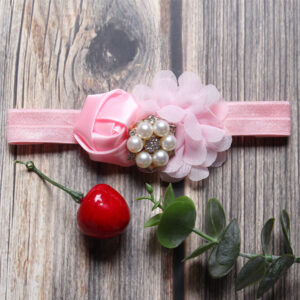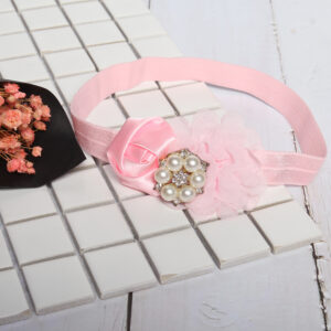 Băng đô có màu hồng nổi bật, được trang trí một cách khéo léo bởi các bông hoa đẹp mắt. Đặc biệt, trên bông hoa lại được gắn những viên ngọc trai lấp lánh, vô cùng nổi bật, chắc chắn sẽ khiến bé yêu thích thú.