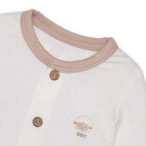 Bộ sơ sinh dài tay Bibo’s có tông màu trắng – be kết hợp hài hòa, cùng với họa tiết cừu xinh xắn, tạo điểm nhấn nổi bật, giúp tôn lên nét đáng yêu của bé trong những năm tháng đầu đời.