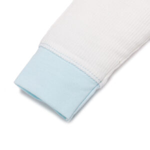Bộ sơ sinh dài tay Bibo’s có tông màu trắng – xanh kết hợp hài hòa, cùng với họa tiết thêu chú gấu con xinh xắn, tạo điểm nhấn nổi bật, giúp tôn lên nét đáng yêu của bé trong những năm tháng đầu đời.