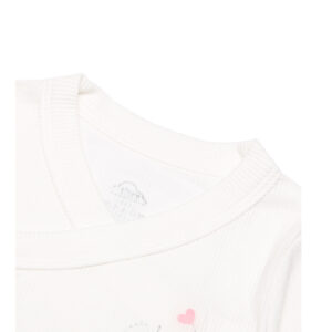 Bộ sơ sinh cài lệch bé gái Bibo's trắng không chỉ gây ấn tượng bởi chất vải mềm mại, sờ mướt tay mà còn chiếm trọn cảm tình của ba mẹ từ cái nhìn đầu tiên bởi thiết kế cài lệch vô cùng xinh xắn. Đặc biệt, bộ đồ còn được may viền sóng ở cổ tay, cổ chân và gấu áo càng làm tôn lên nét đáng yêu, điệu đà của bé gái những năm tháng đầu đời.